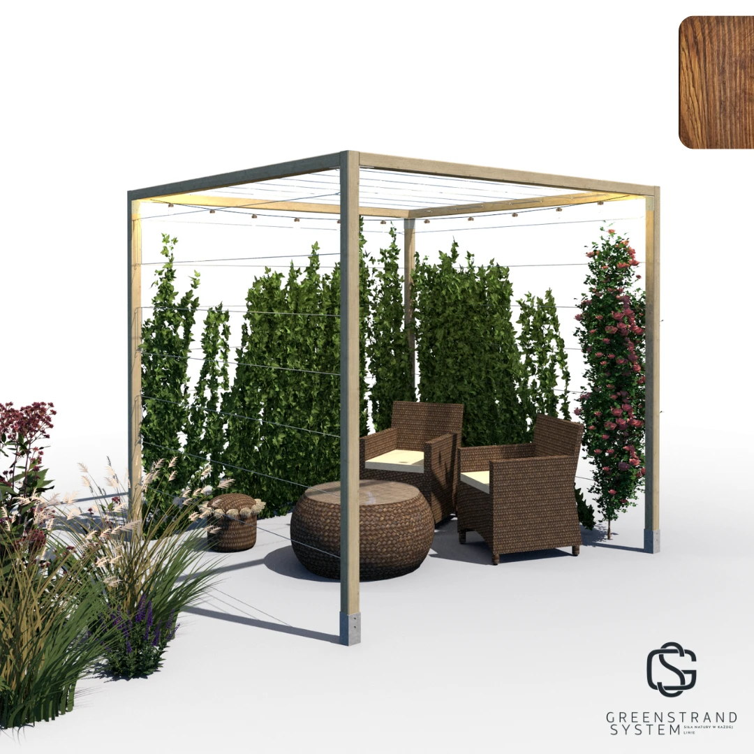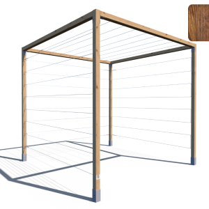 Pergola K 240x254x254 drewniana z linami stalowymi ciemny dąb