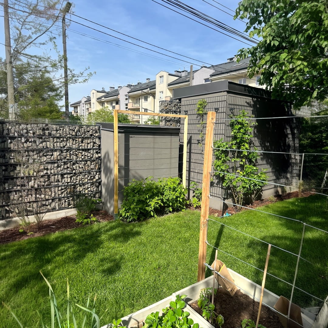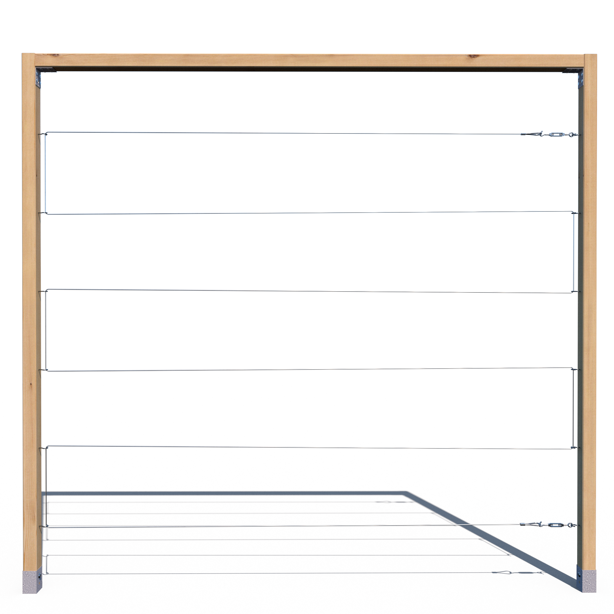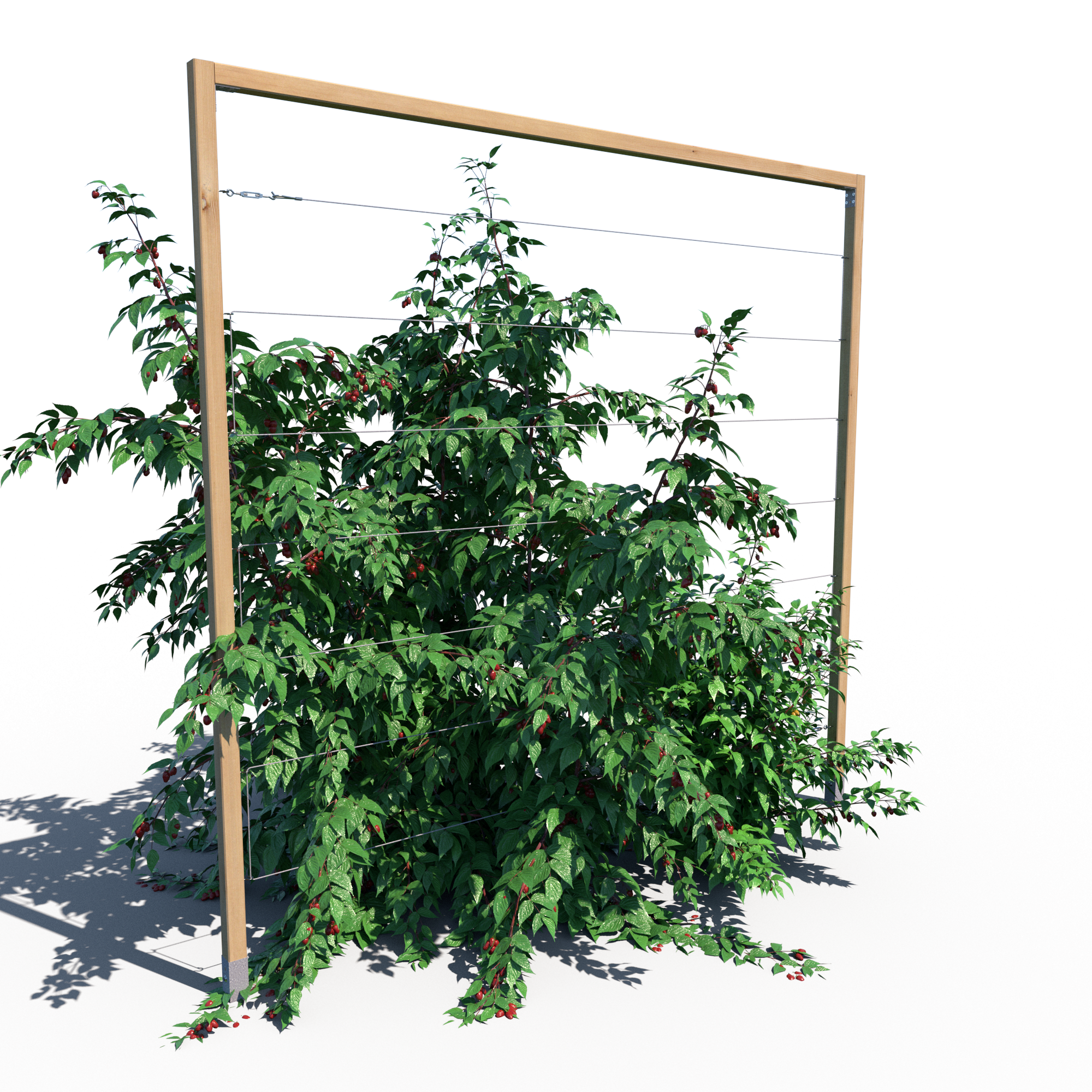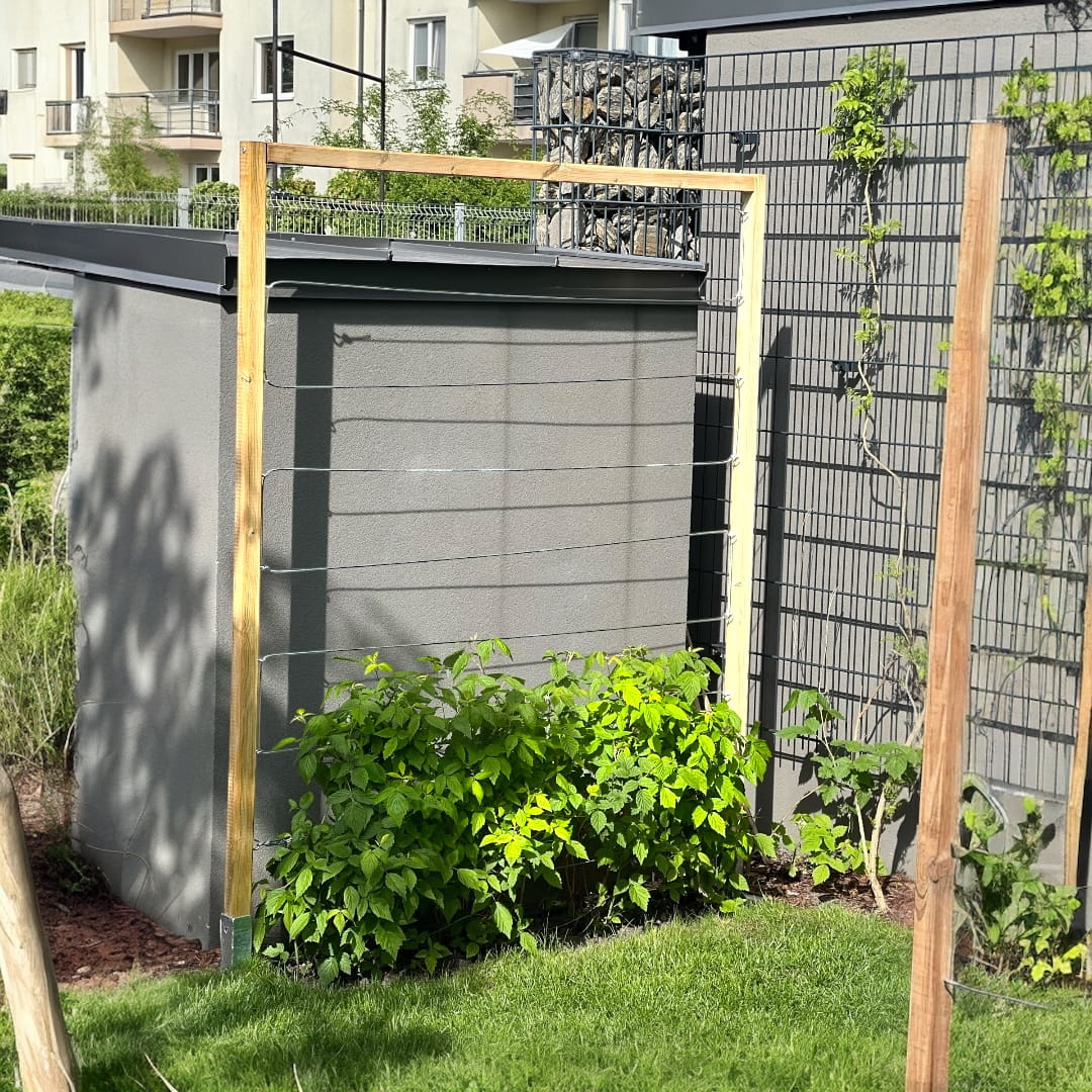 Stabilna rama z drewna sosnowego oraz poziome cięgna stalowe tworzą podporę, która porządkuje wzrost roślin i ułatwia ich prowadzenie.