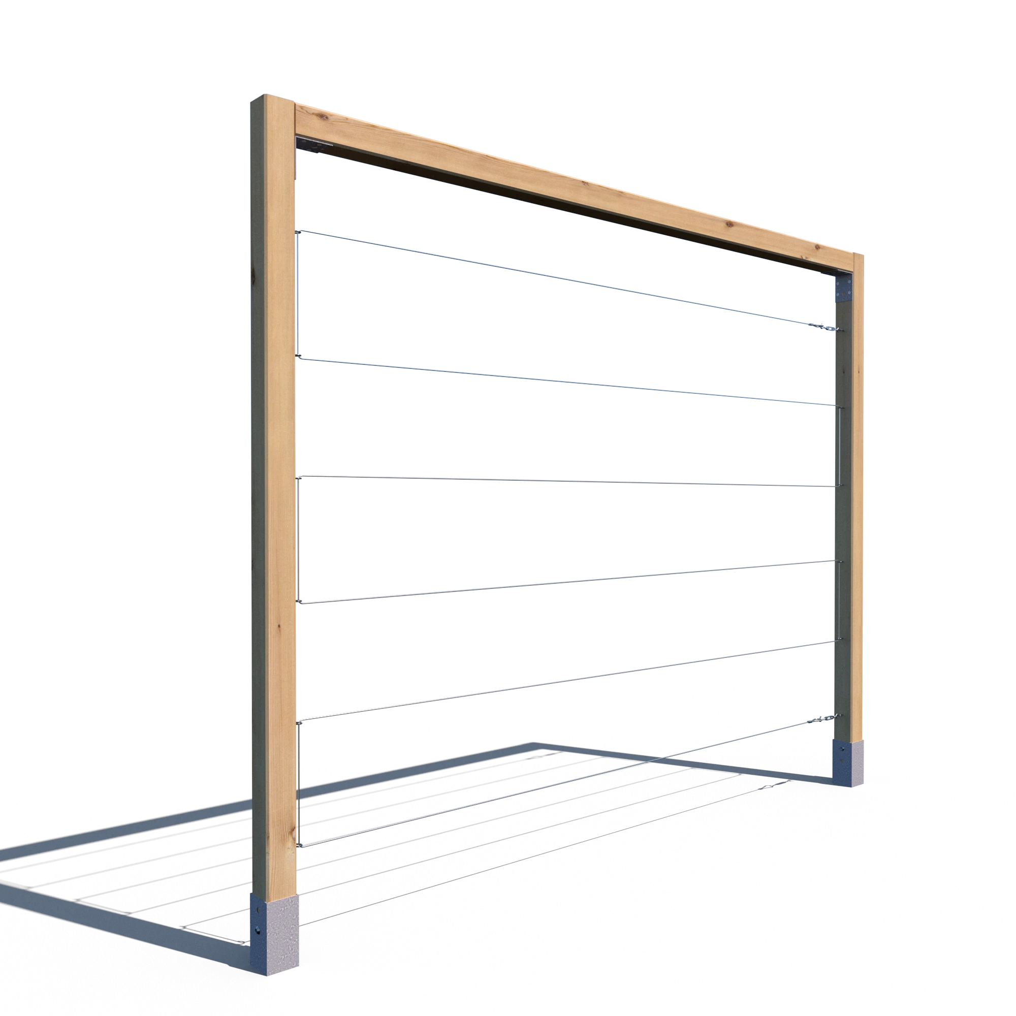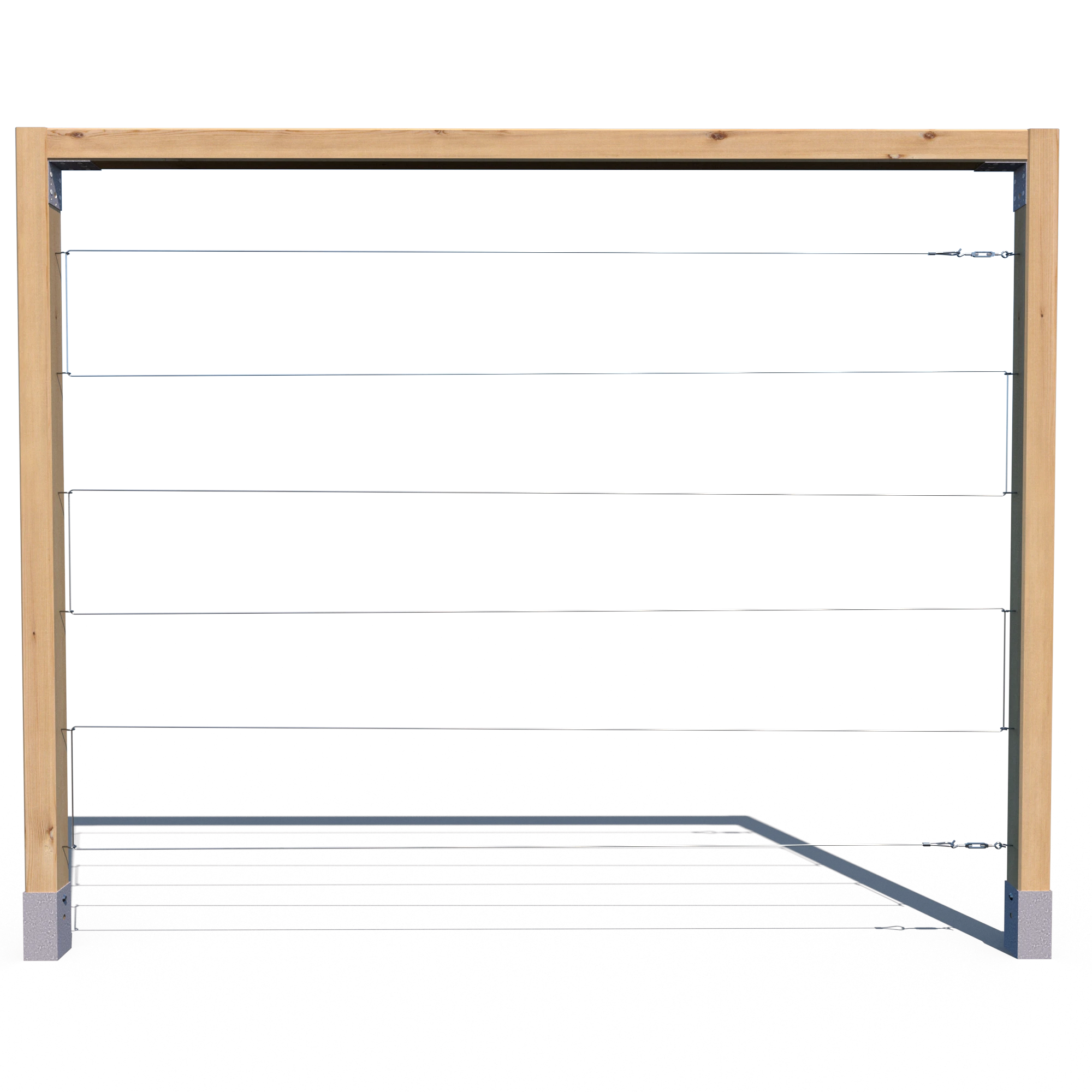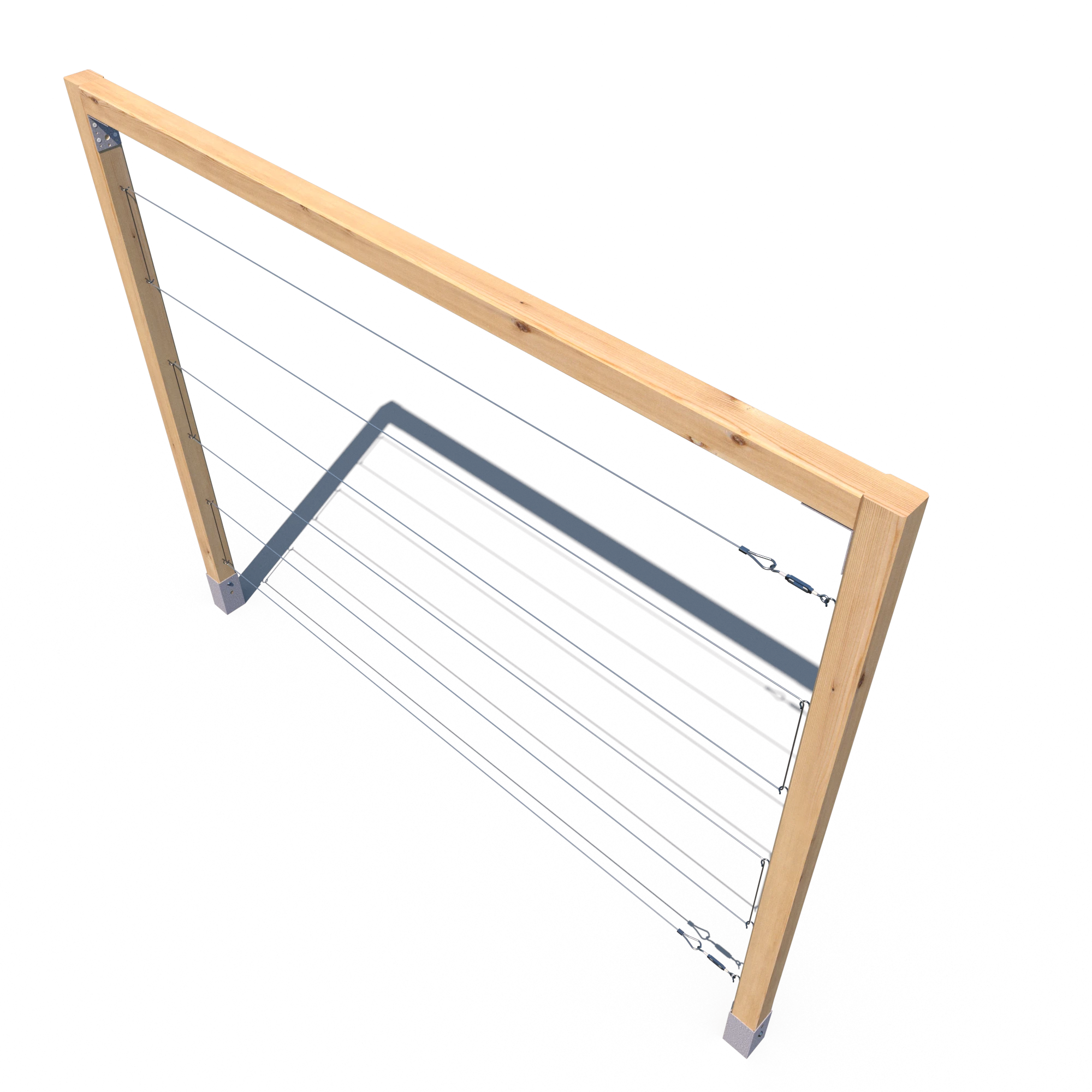 Model R 180x224 to propozycja dla tych, którzy potrzebują szerokiej, ale nieco niższej konstrukcji do prowadzenia roślin pnących. Zbudowany z dwóch pionowych kantówek oraz jednej górnej belki poziomej. Idealny przy ogrodzeniach, elewacjach lub jako przegroda w ogrodzie. Dostępny z układem linek poziomym (6 linek) lub pionowym (6 linek).
