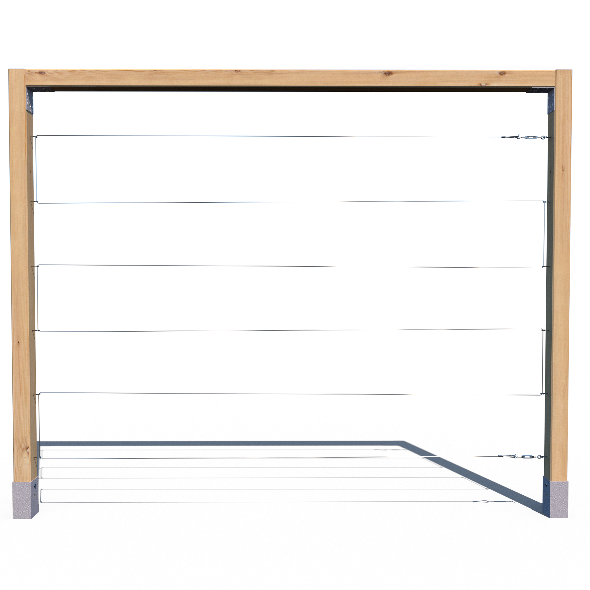 Model R 180x224 to klasyczny trejaż w wersji szerokiej, ale o obniżonej wysokości. Zbudowany z dwóch pionowych kantówek oraz jednej poziomej, oferuje stabilność przy jednoczesnej kompaktowej wysokości – idealny do ogrodzeń, elewacji, przydomowych przestrzeni. Posiada 6 linek poziomych (standard) lub 6 pionowych (opcja), co ułatwia dopasowanie do rodzaju roślin.