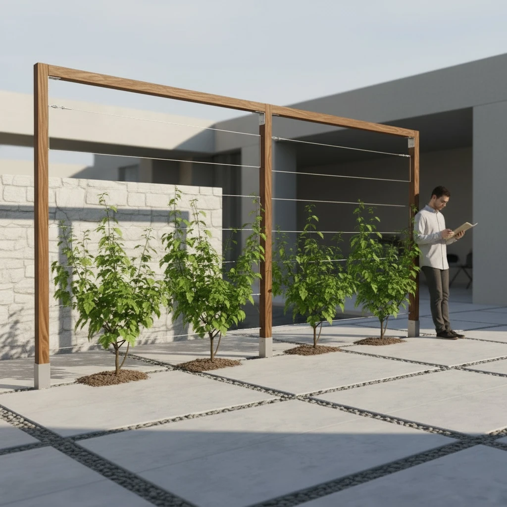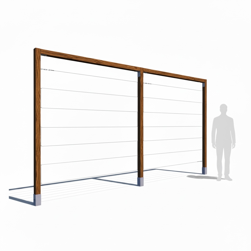 Konstrukcja zaprojektowana do budowy szerokich, uporządkowanych form zieleni. System stalowych cięgien prowadzi rośliny w kontrolowany sposób, tworząc spójną i powtarzalną strukturę w przestrzeni.