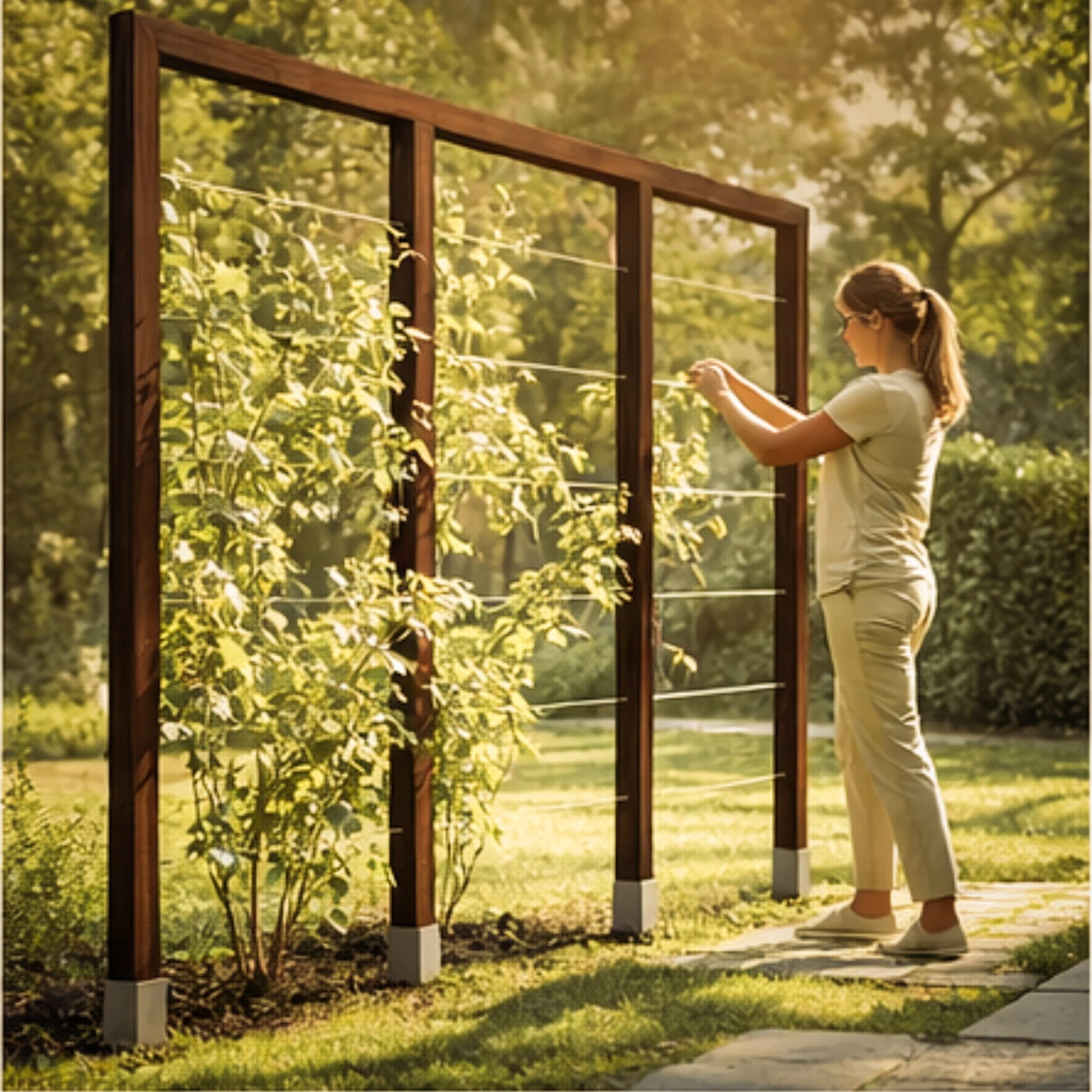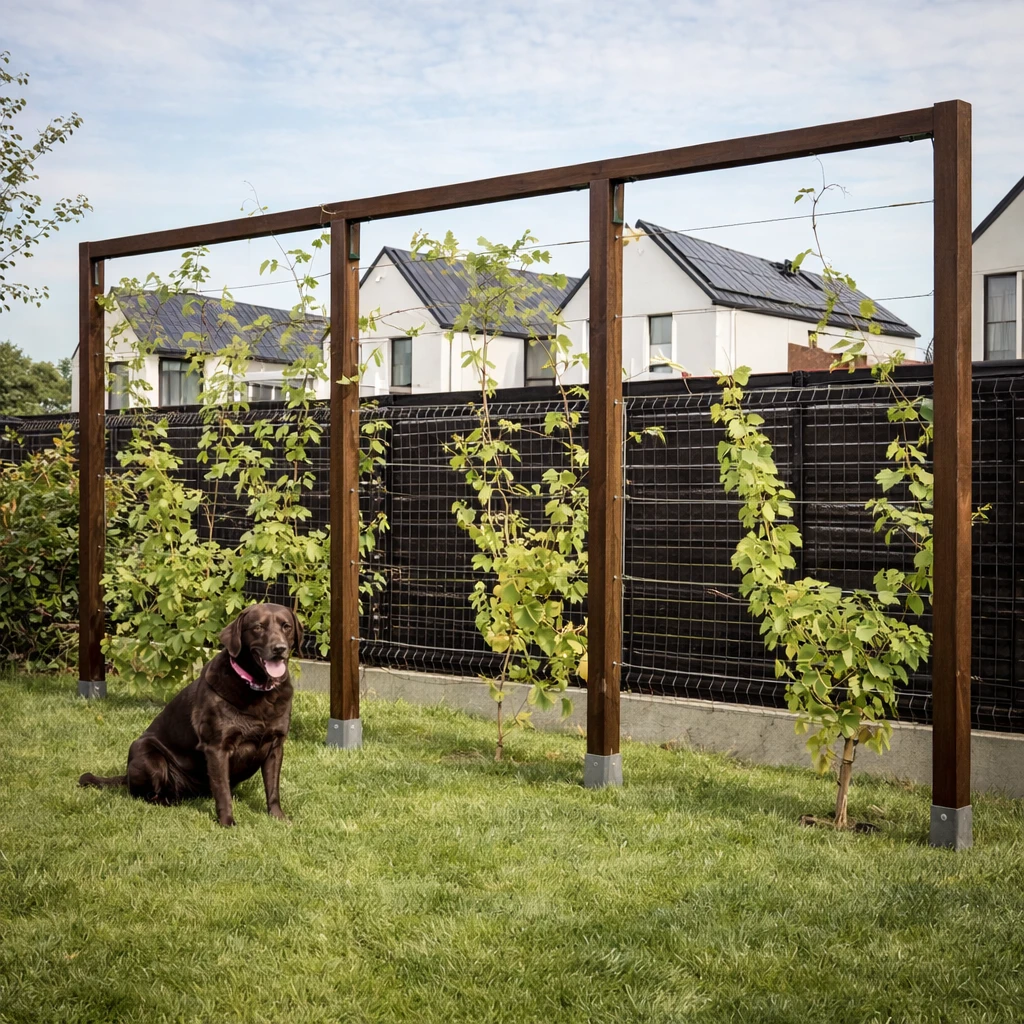 Dzięki wyraźnemu podziałowi na sekcje trejaż tworzy czytelną strukturę w ogrodzie, pozwalając budować zielone ściany, przesłony i rytmiczne układy nasadzeń – zarówno w przestrzeniach przydomowych, jak i bardziej uporządkowanych aranżacjach.