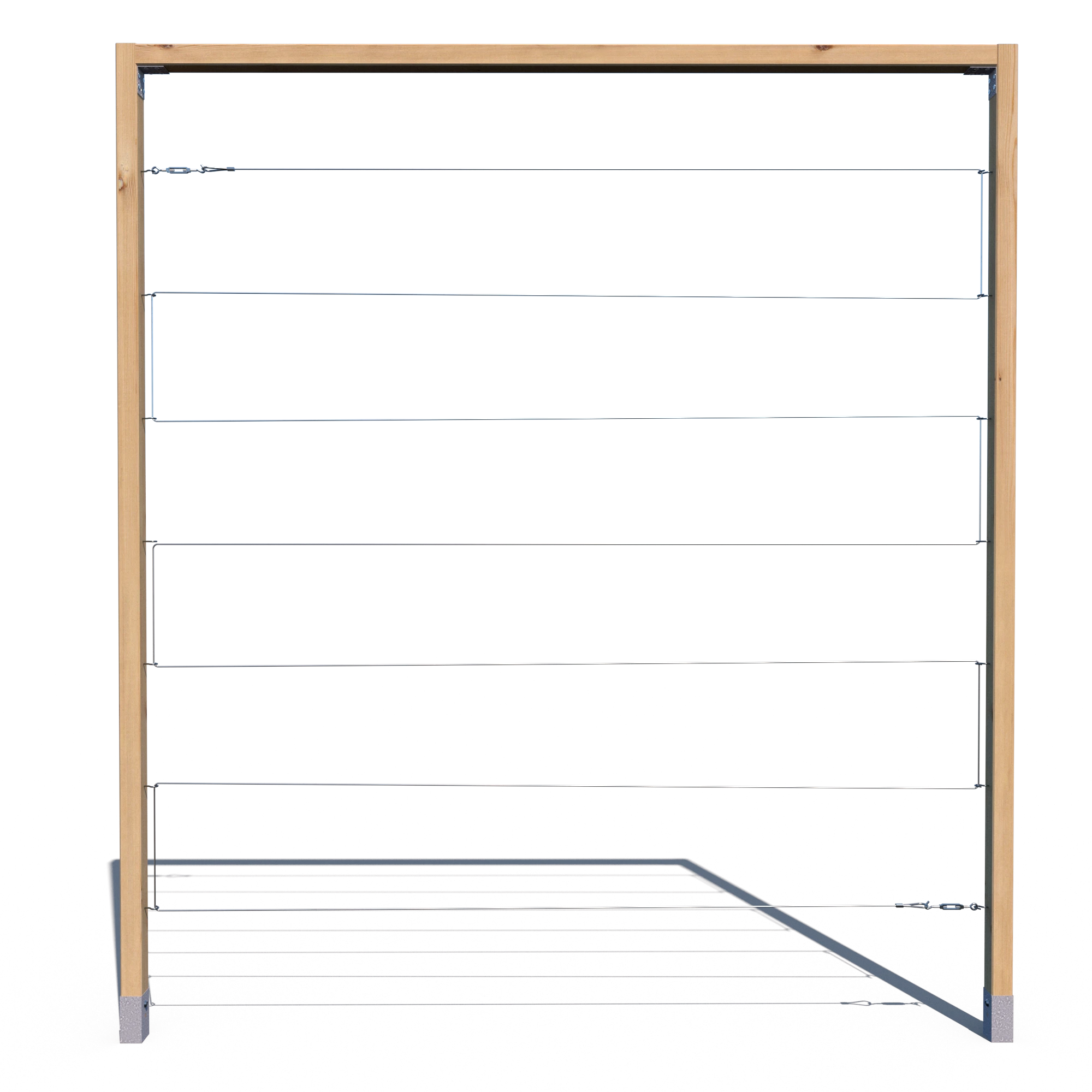 Model R mini to lekka, a zarazem wytrzymała konstrukcja do wertykalnej uprawy roślin. Składa się z dwóch kantówek pionowych oraz jednej górnej – poziomej. W wersji standardowej zawiera 7 poziomych linek, a w opcji – 5 pionowych. Można go łatwo dopasować do warunków ogrodu i rodzaju pnączy. Świetnie sprawdzi się w małych i średnich przestrzeniach.