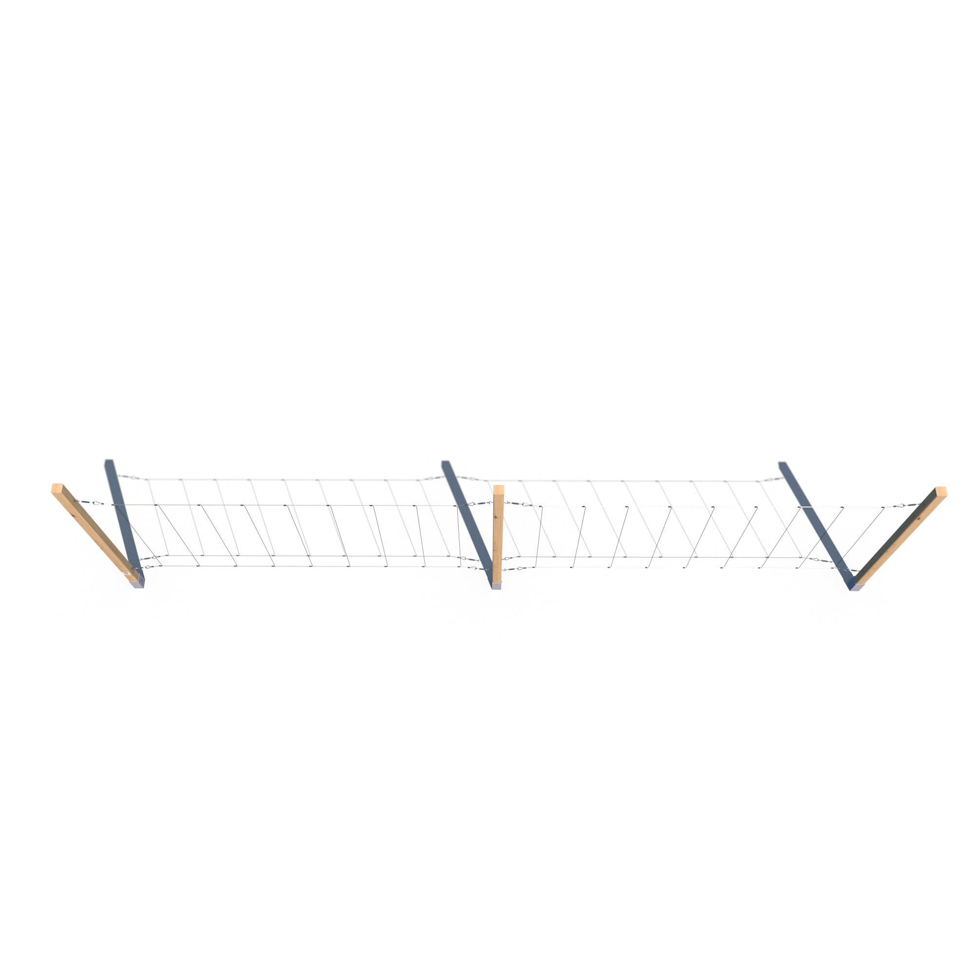 Trejaż S 180x600 to jeden z największych modeli w naszej kolekcji. Dzięki trzem pionowym słupkom i solidnej kantówce 70x70 mm zapewnia wyjątkową stabilność oraz dużą powierzchnię do prowadzenia roślin. Doskonale sprawdzi się w ogrodzie, przy tarasach lub jako zielona przegroda. Lina stalowa zabezpieczona przed korozją może być ułożona poziomo lub pionowo – aż po 9 linek na każdą sekcję.