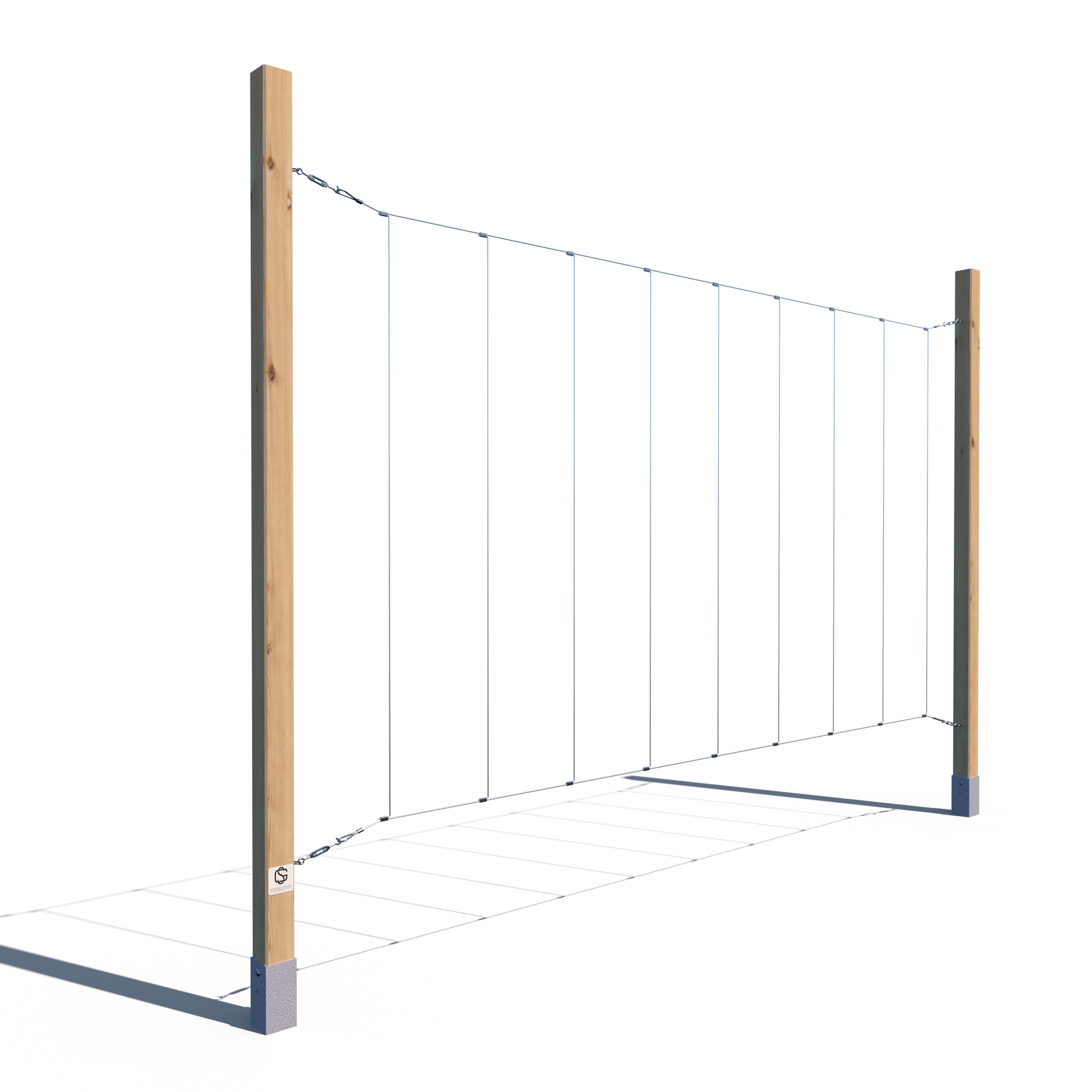 Trejaż S 210x300 to propozycja dla osób, które potrzebują stabilnej i funkcjonalnej podpory dla roślin pnących. Konstrukcja z dwóch słupków pionowych z kantówki 70x70 mm umożliwia łatwe dopasowanie do przestrzeni ogrodowej. Lina stalowa zabezpieczona przed korozją może być prowadzona w dwóch wariantach – jako 7 linek poziomych (opcja) lub 9 pionowych (standard).