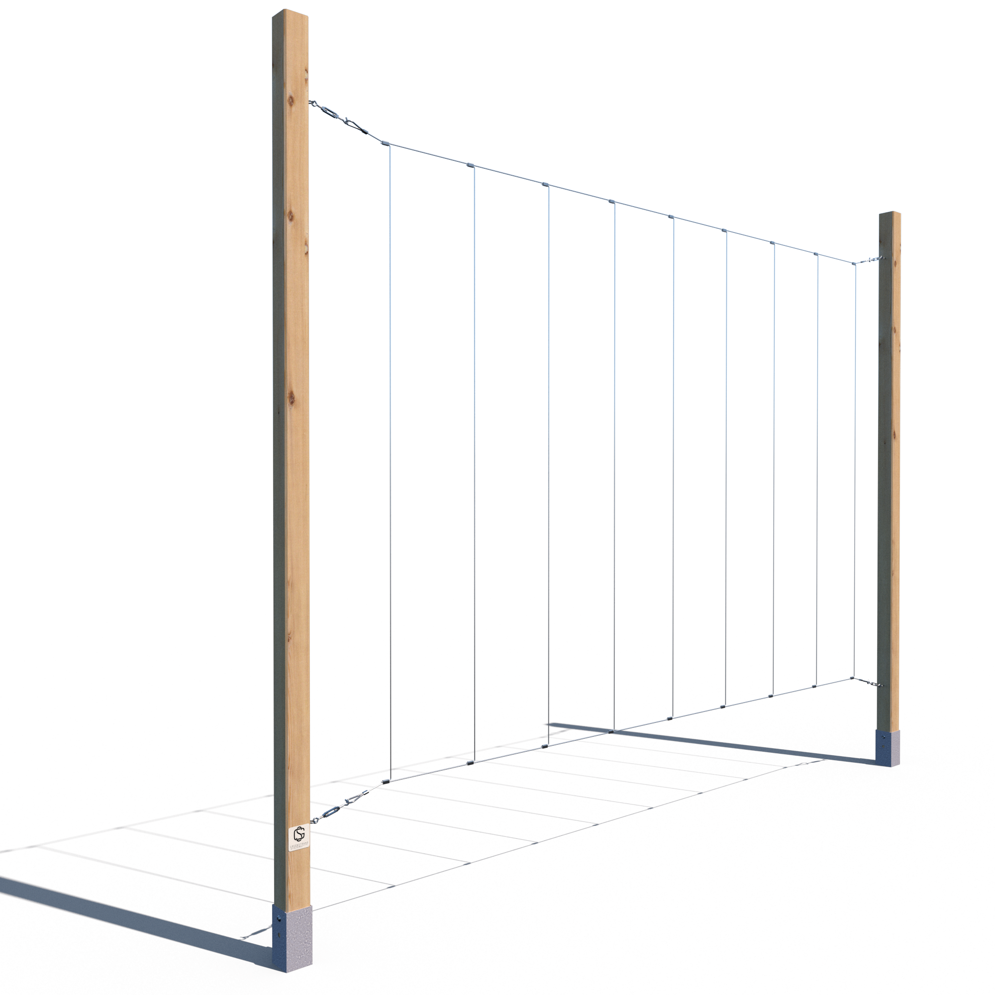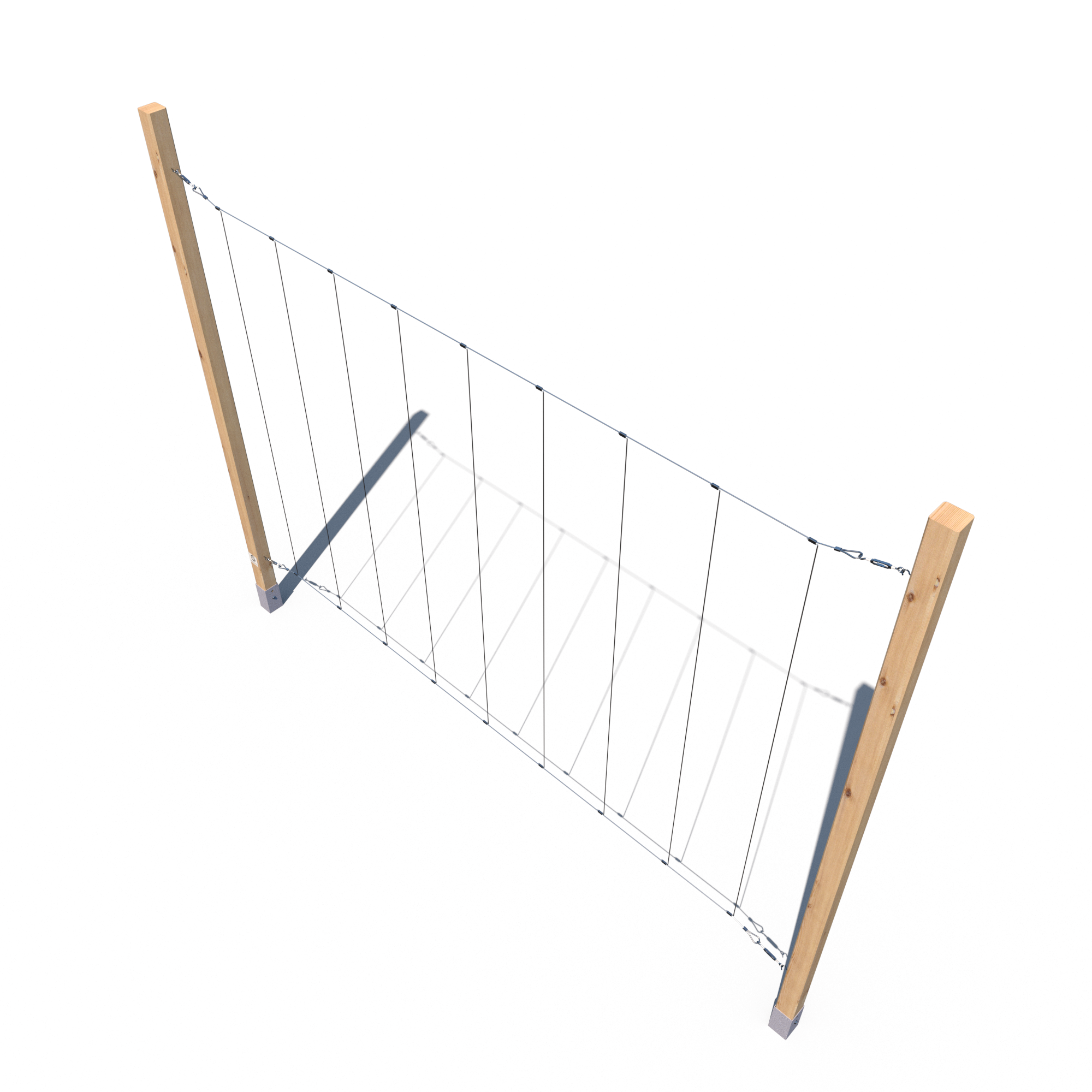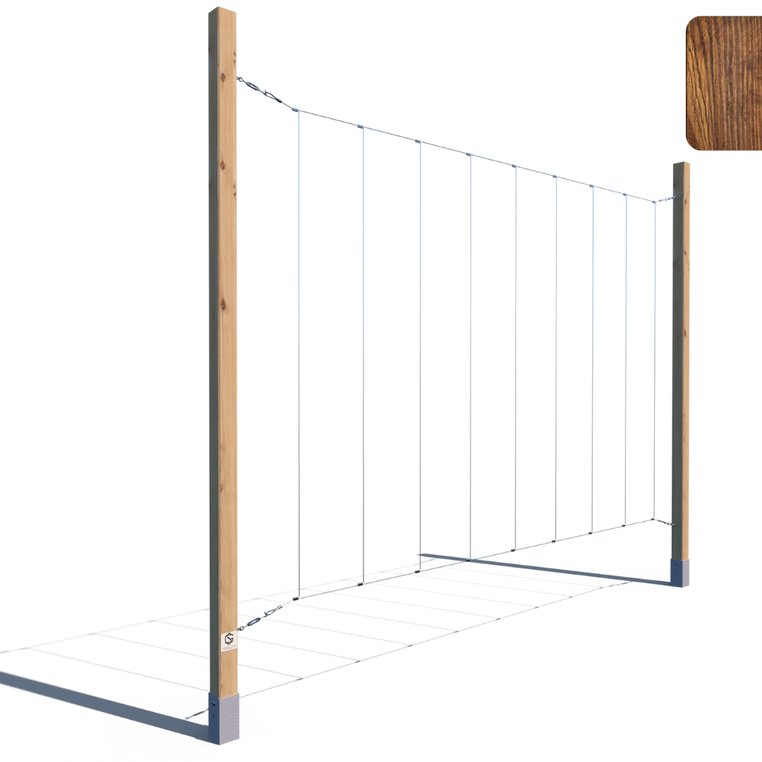 Trejaż ogrodowy o wysokości 240 cm, wykonany z kantówki 70x70 mm, impregnowany ciśnieniowo na kolor ciemny dąb. Wyposażony w stalowe linki do prowadzenia roślin – w układzie pionowym lub poziomym. Idealny jako zielona przegroda przy tarasie, ścianie lub w ogrodzie.