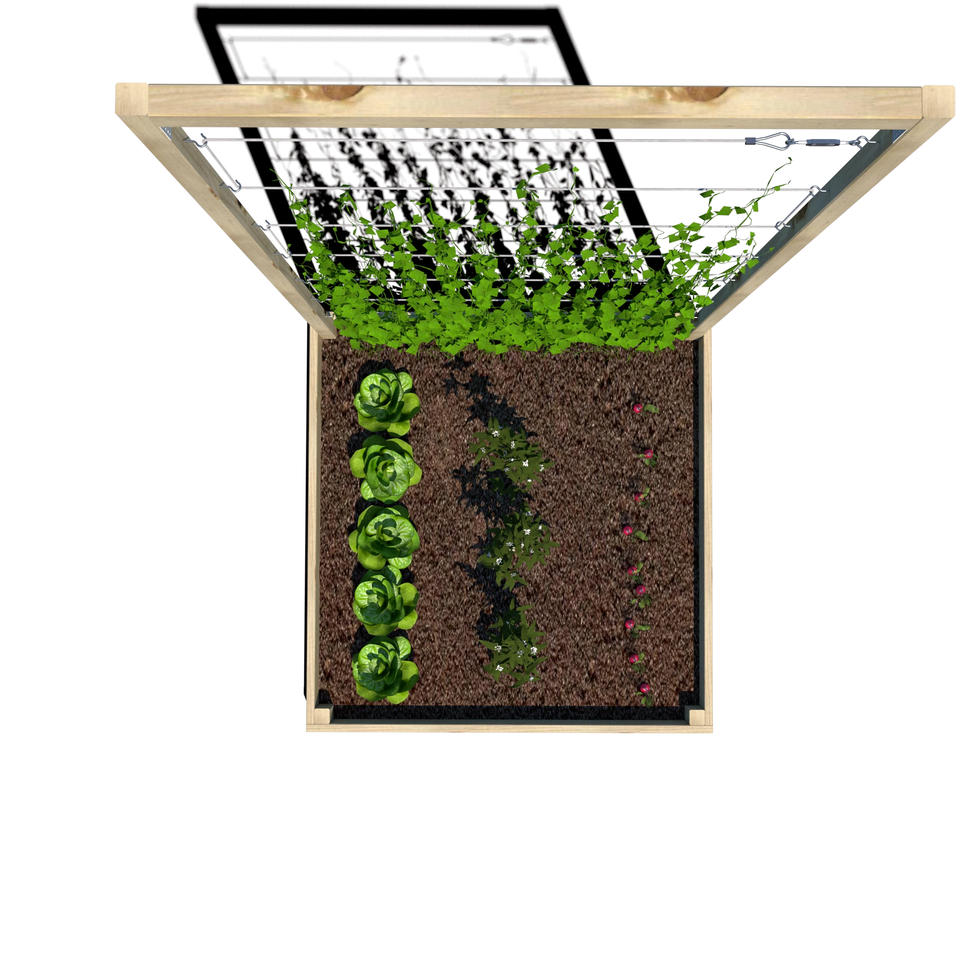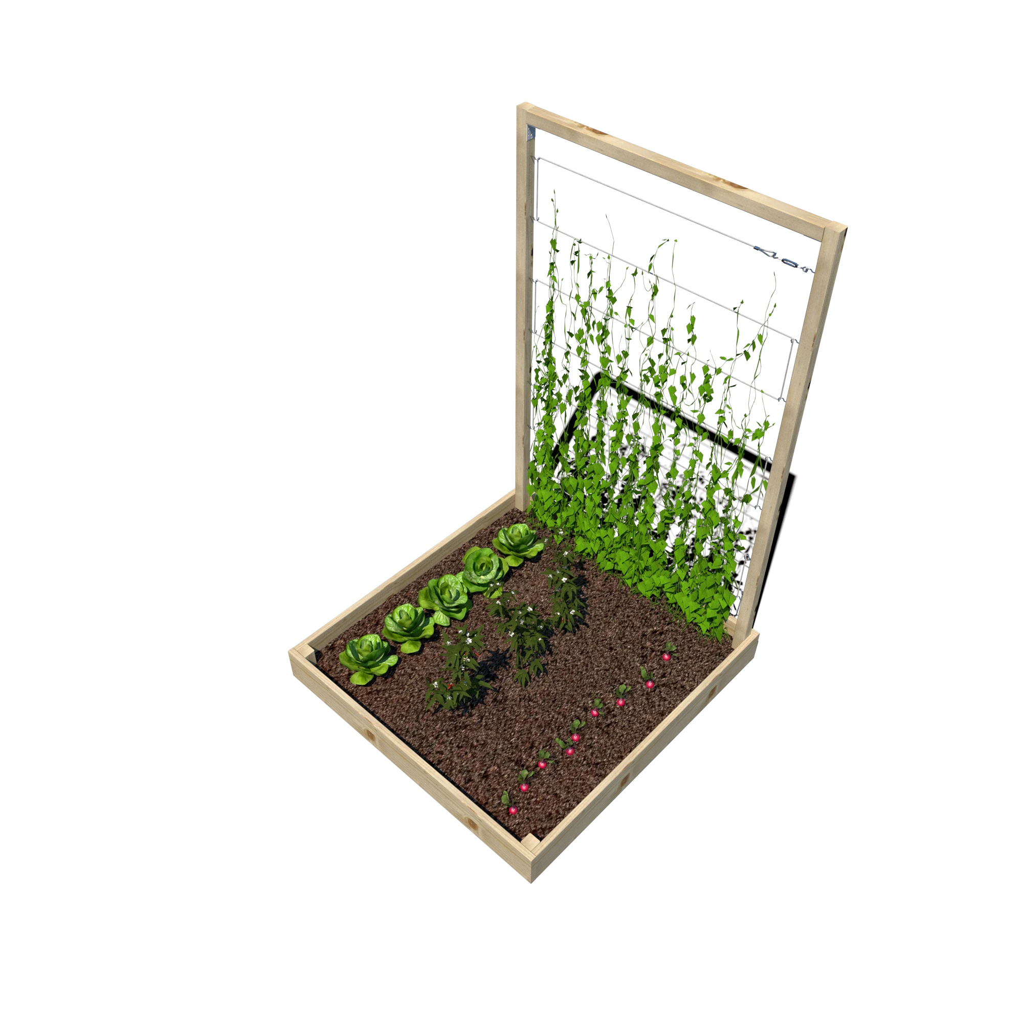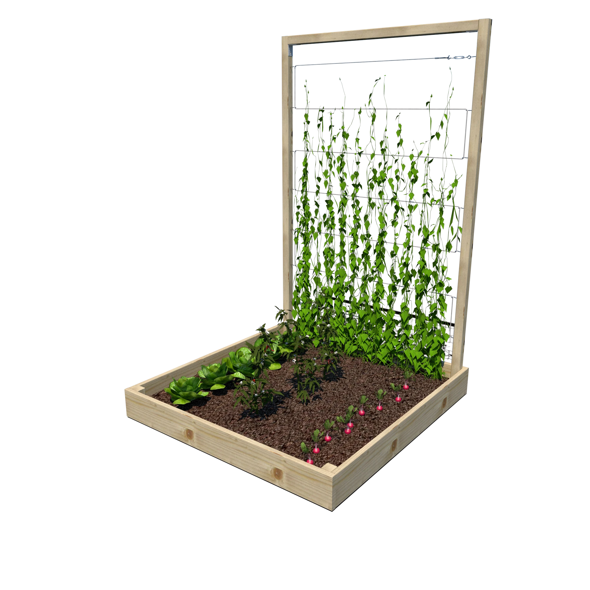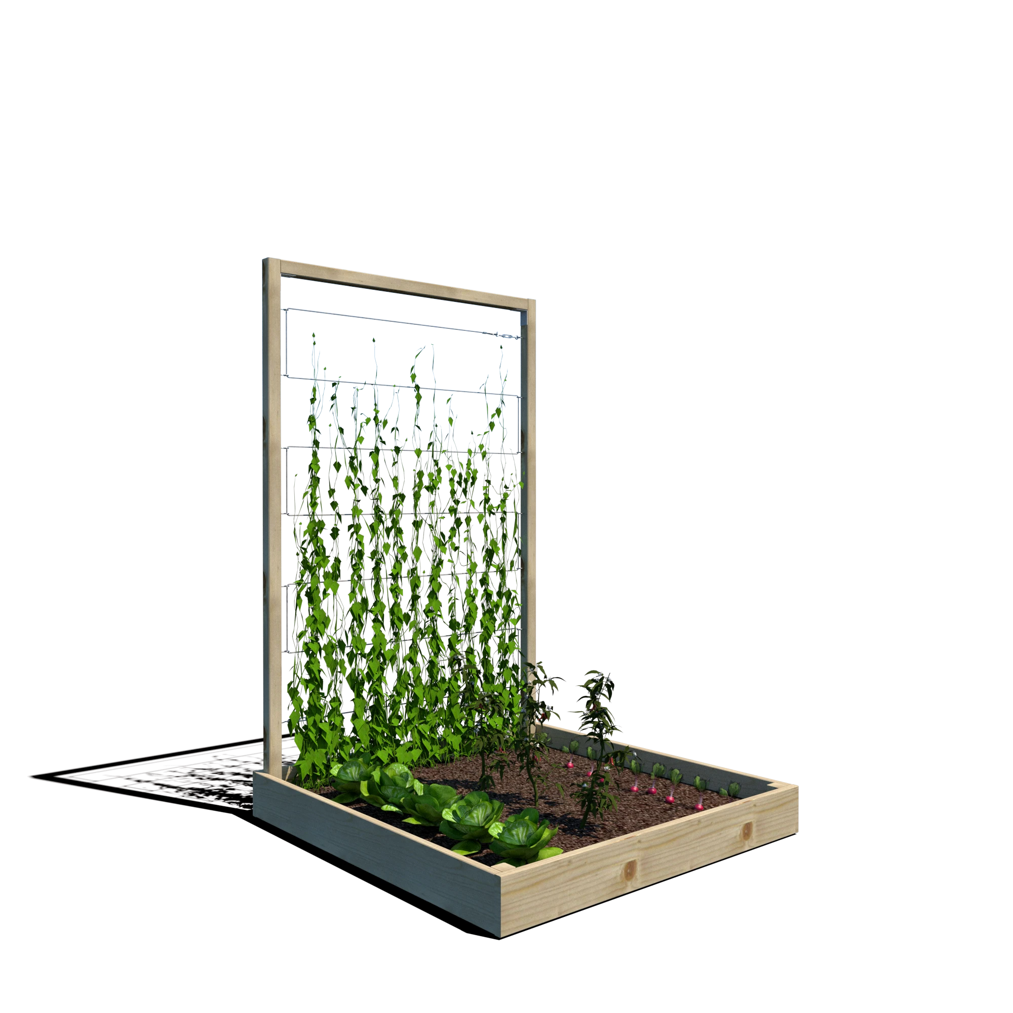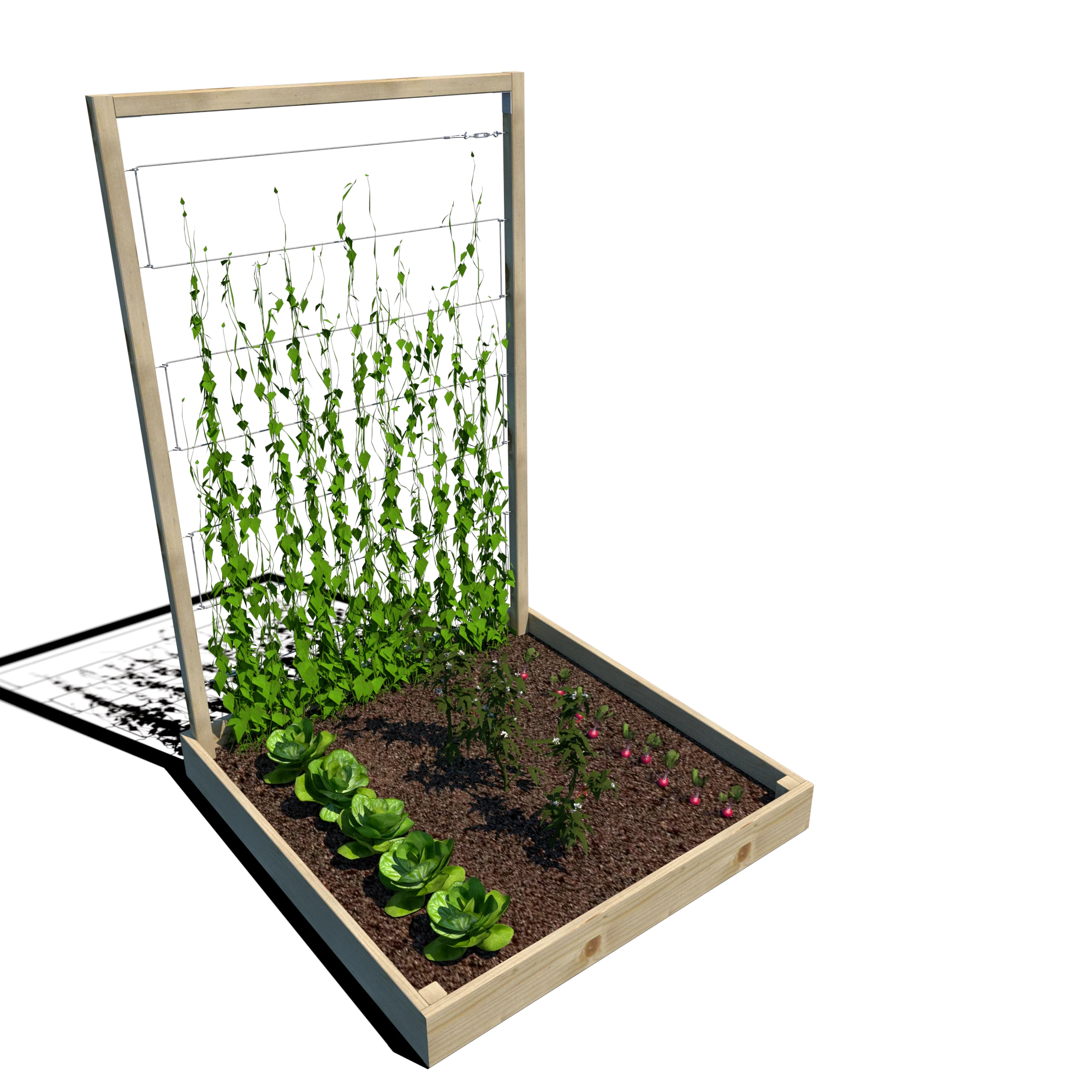 Warzywnik zapewnia doskonałe warunki do uprawy warzyw, ziół i kwiatów, a trejaż o wysokości 180 cm umożliwia prowadzenie nawet wymagających roślin pnących. Dzięki przemyślanej konstrukcji może być wykorzystywany w ogrodach, na tarasach czy w miejskich ogródkach społecznych.