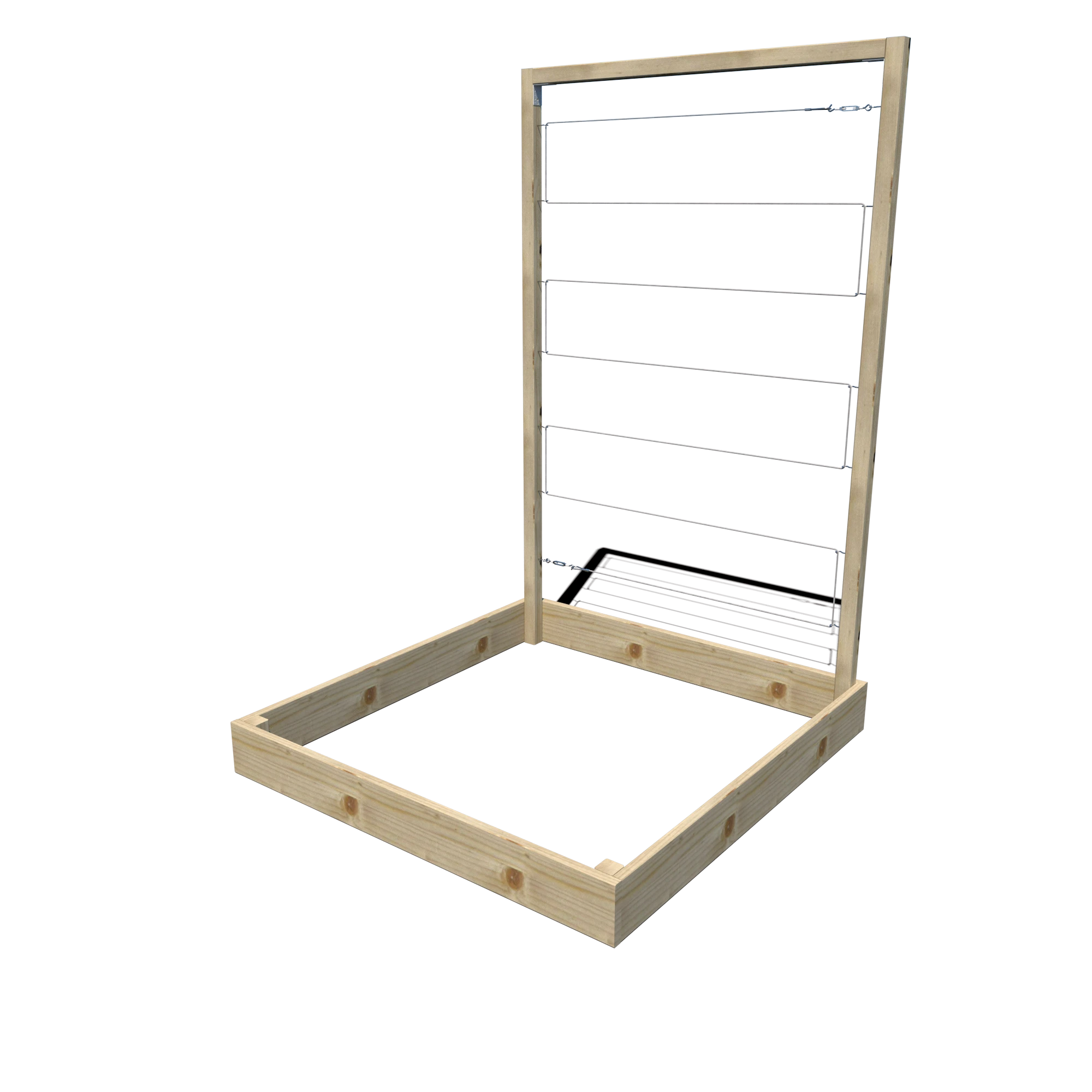 Drewniany warzywnik o wymiarach 120×125×14.5 cm z trejażem o wysokości 180 cm to idealne rozwiązanie do uprawy warzyw, ziół i roślin pnących. Wykonany z impregnowanego ciśnieniowo drewna sosnowego, zapewnia trwałość i odporność na warunki atmosferyczne. Solidna konstrukcja i wysoki trejaż umożliwiają prowadzenie nawet wymagających roślin pnących, takich jak winorośl czy fasola.