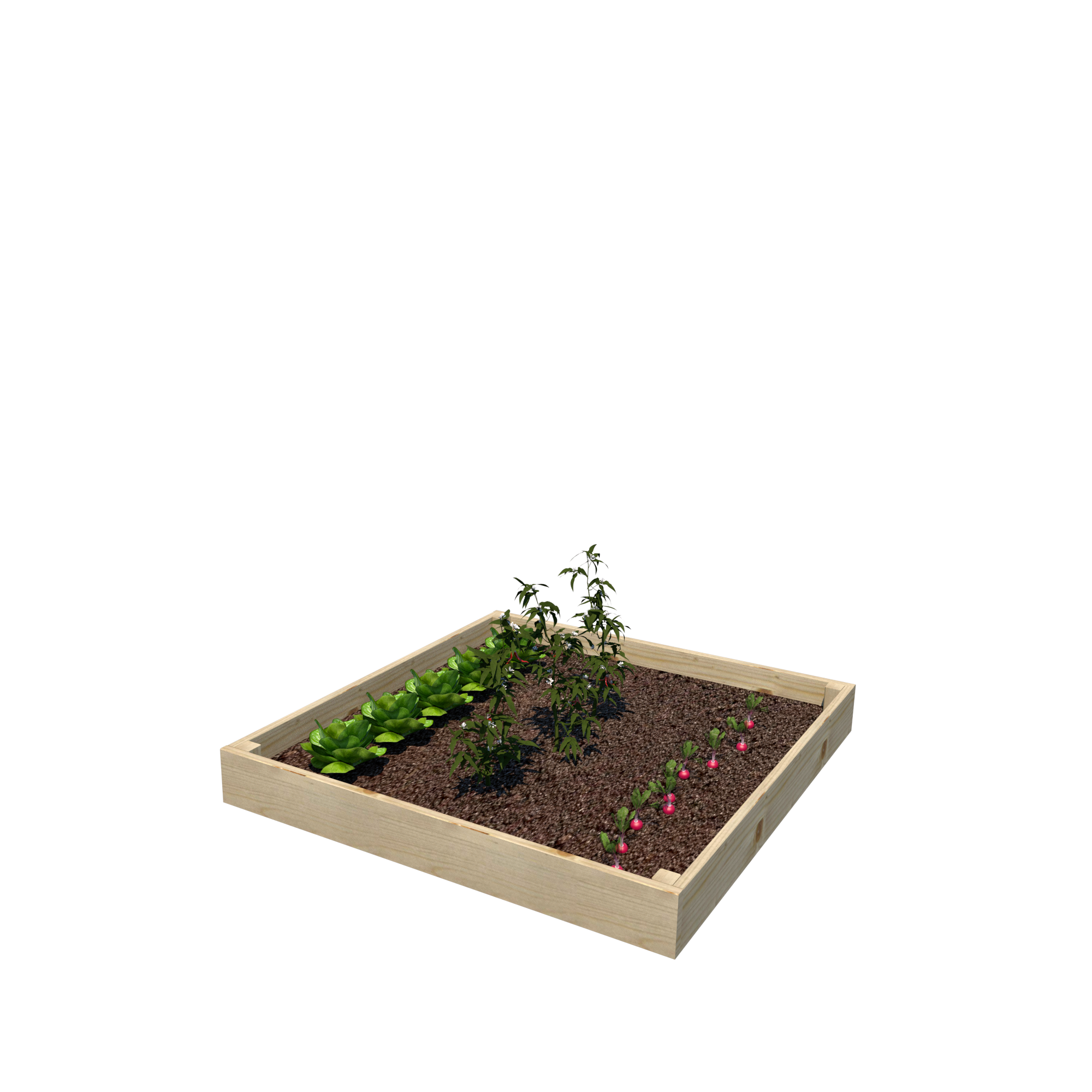 Warzywnik 120×125×14.5 to solidna i estetyczna skrzynia ogrodowa, idealna do uprawy warzyw, ziół i kwiatów. Dzięki impregnowanemu ciśnieniowo drewnu sosnowemu, warzywnik jest odporny na wilgoć i inne czynniki atmosferyczne, co gwarantuje jego trwałość przez wiele sezonów. Niska wysokość sprawia, że doskonale nadaje się do tworzenia rabat warzywnych i ziołowych w ogrodach, na tarasach i balkonach.