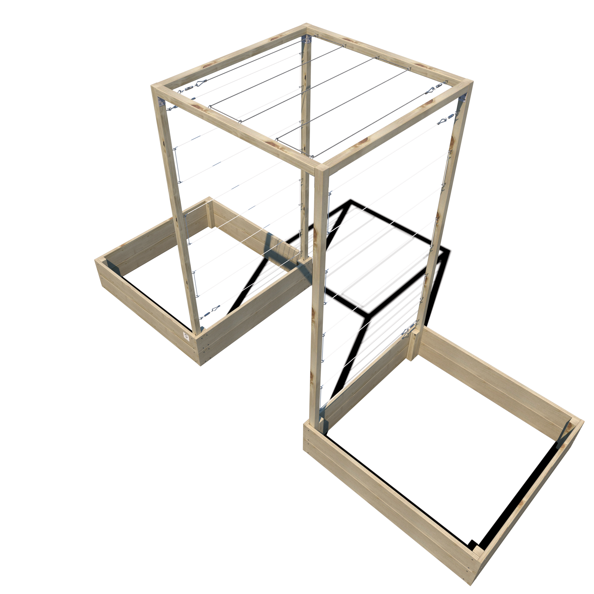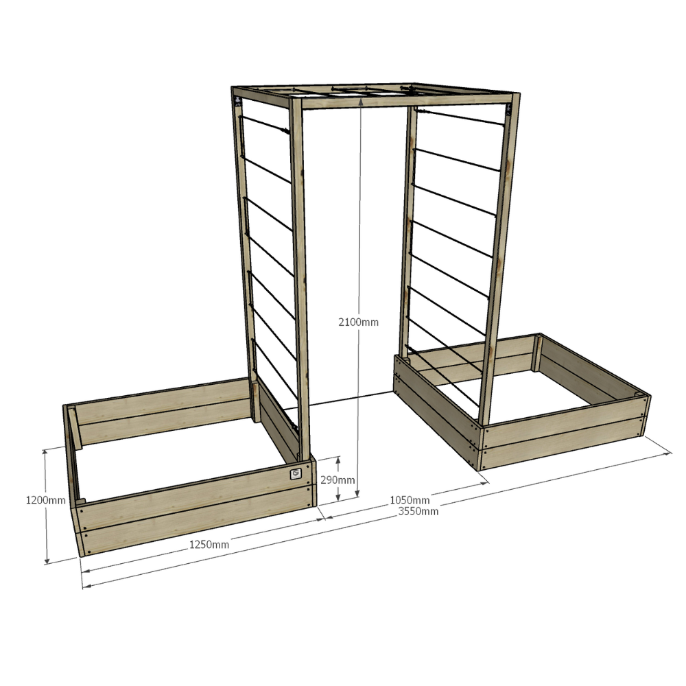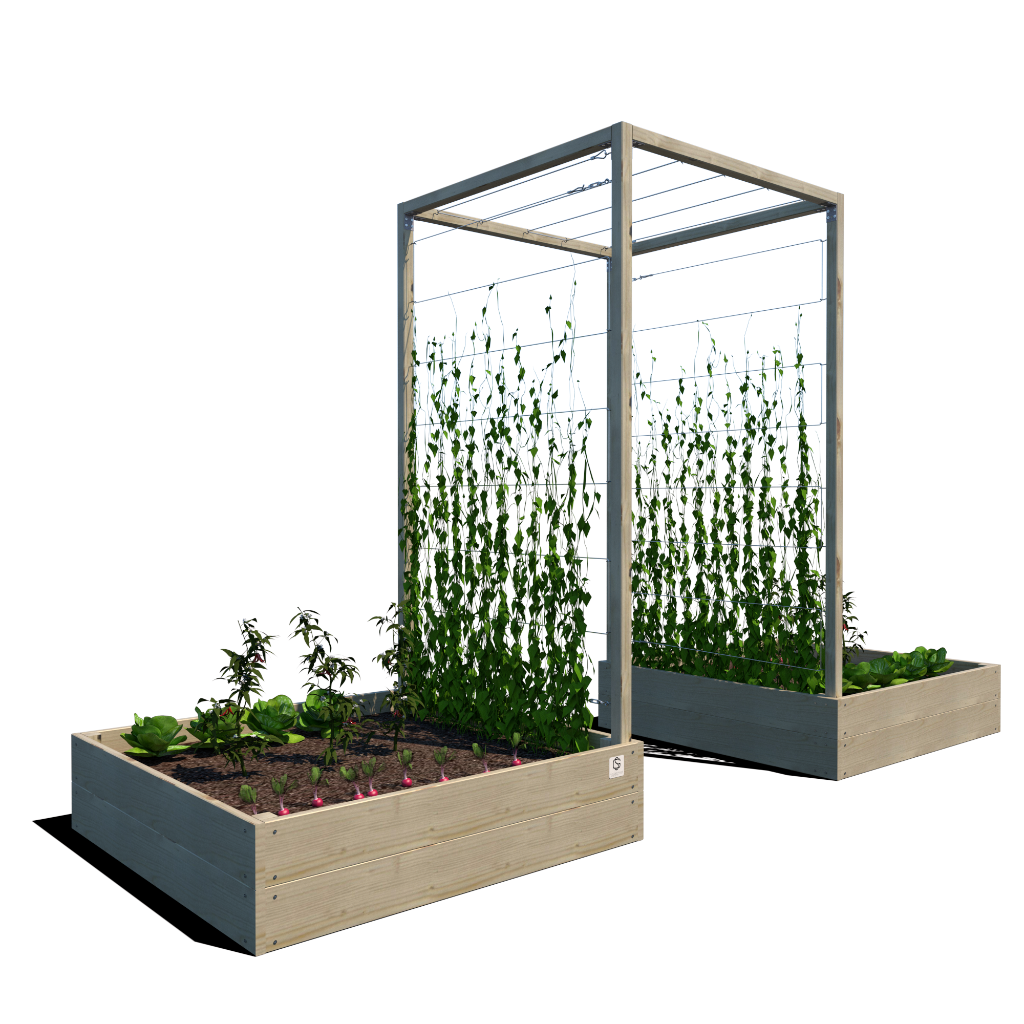 Unikalne połączenie dwóch warzywników z trejażem – efektowna i funkcjonalna forma mini pergoli do uprawy roślin pnących.