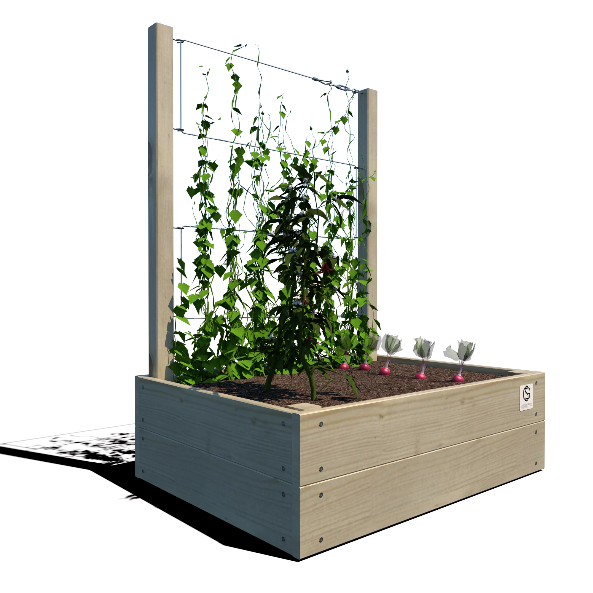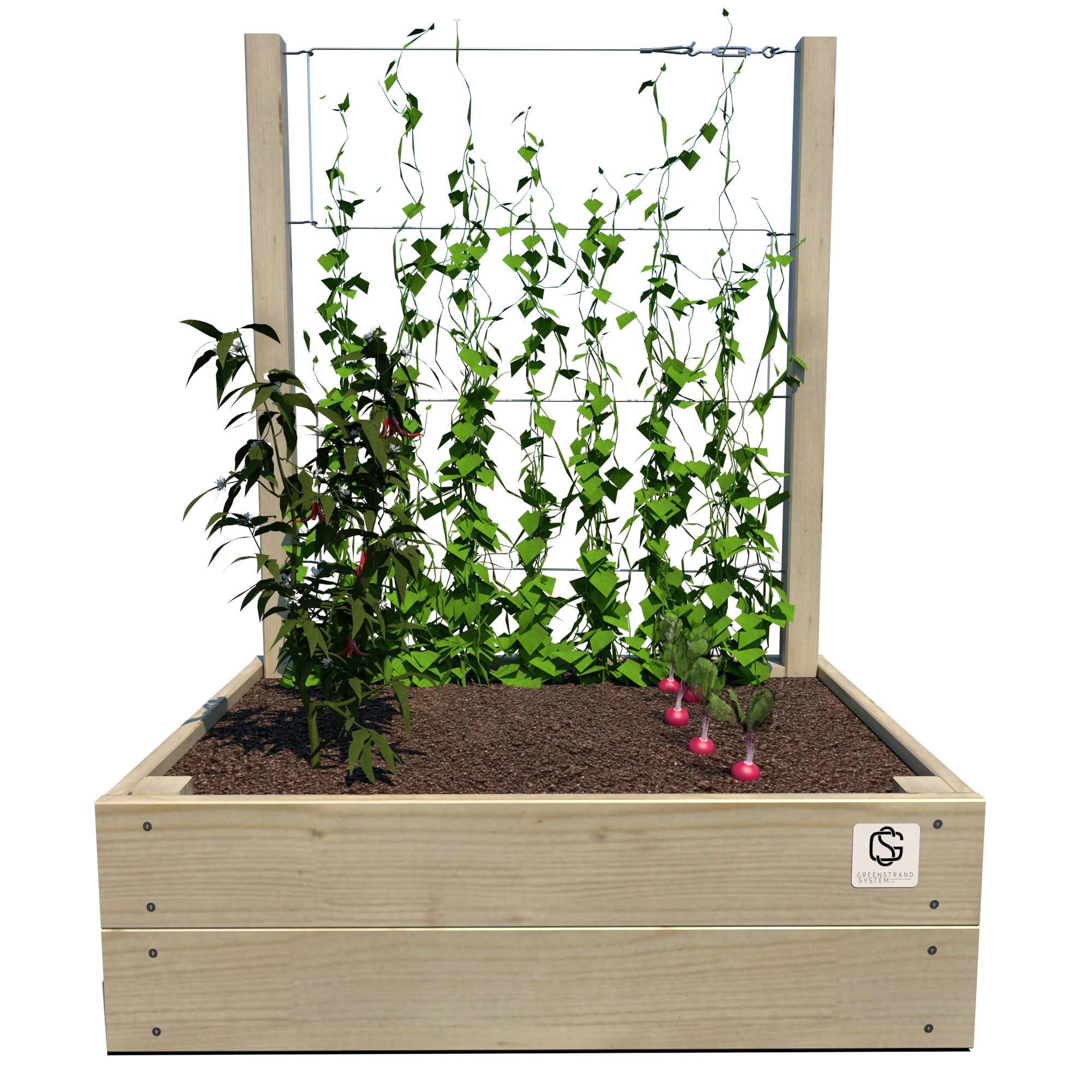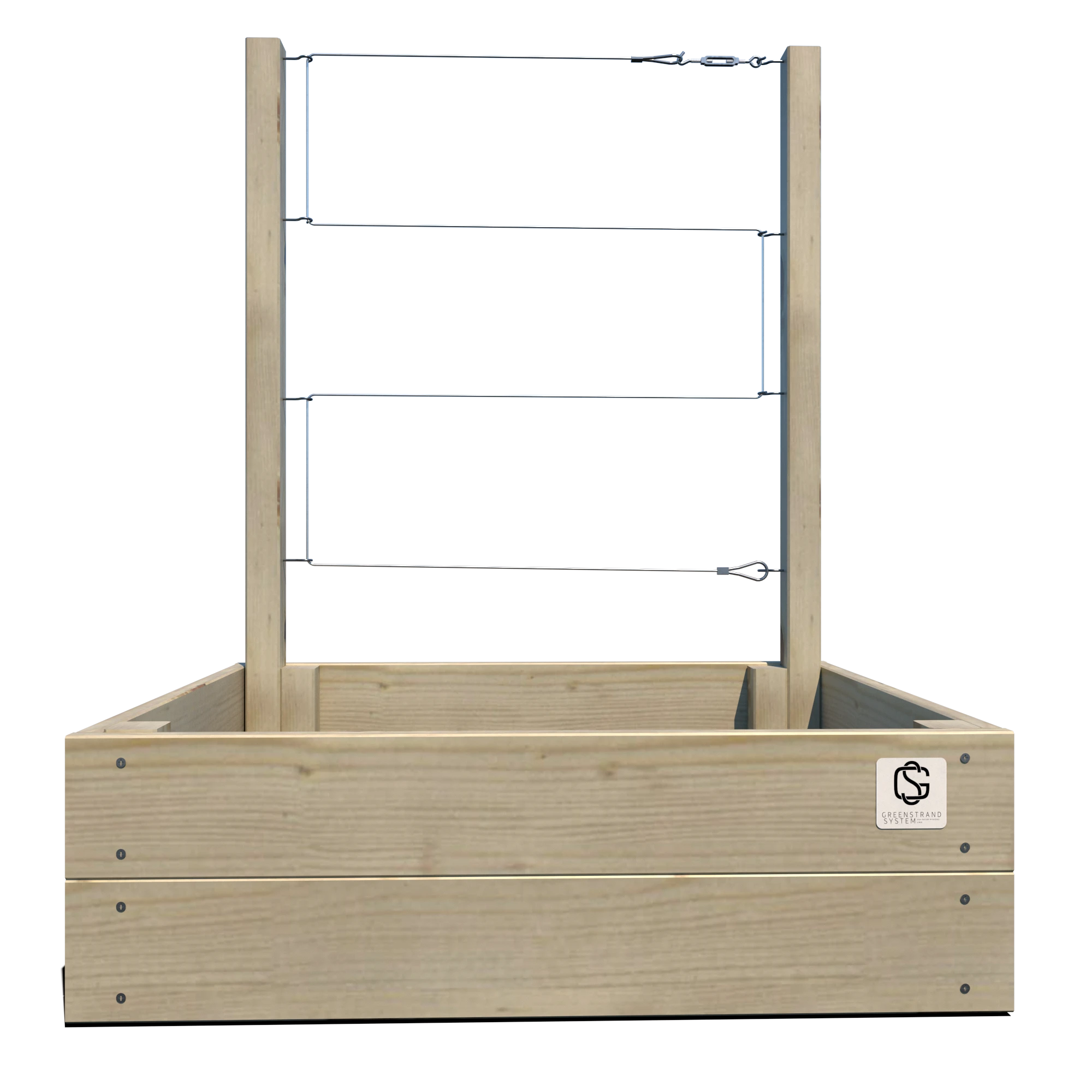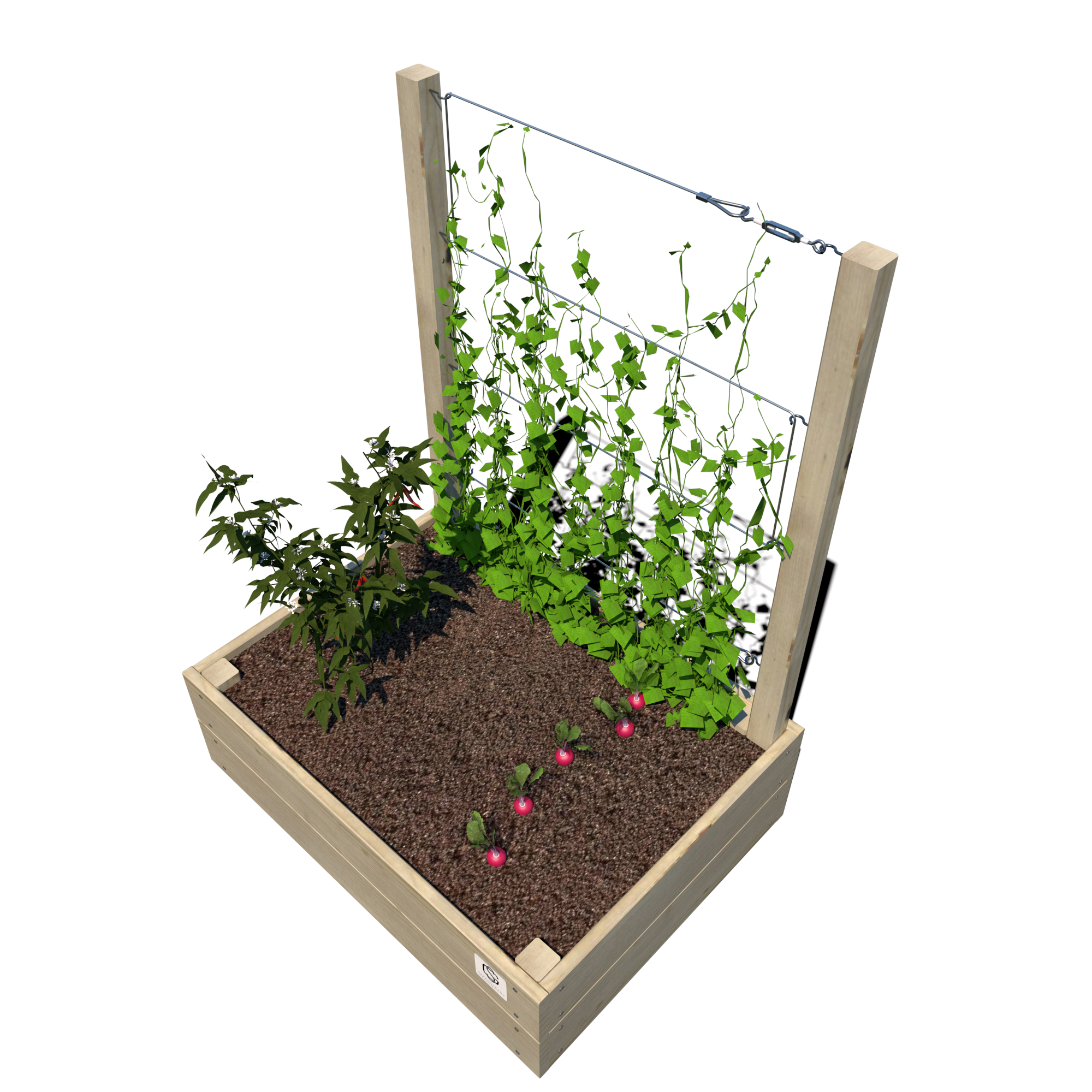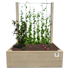 Warzywnik 80×60×24 S Junior został zaprojektowany z myślą o dzieciach – jego kompaktowe wymiary oraz trejaż o wysokości 105 cm pozwalają na łatwe prowadzenie warzyw, ziół i roślin pnących w komfortowych i bezpiecznych warunkach. Produkt dostępny z trzema wariantami olinowania: lina stalowa, lina włóknista lub lina z tworzywa sztucznego.