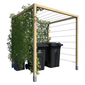 Zabudowa śmietnika z pergolą 210x194 cm – drewniana osłona z linkami stalowymi, impregnowana