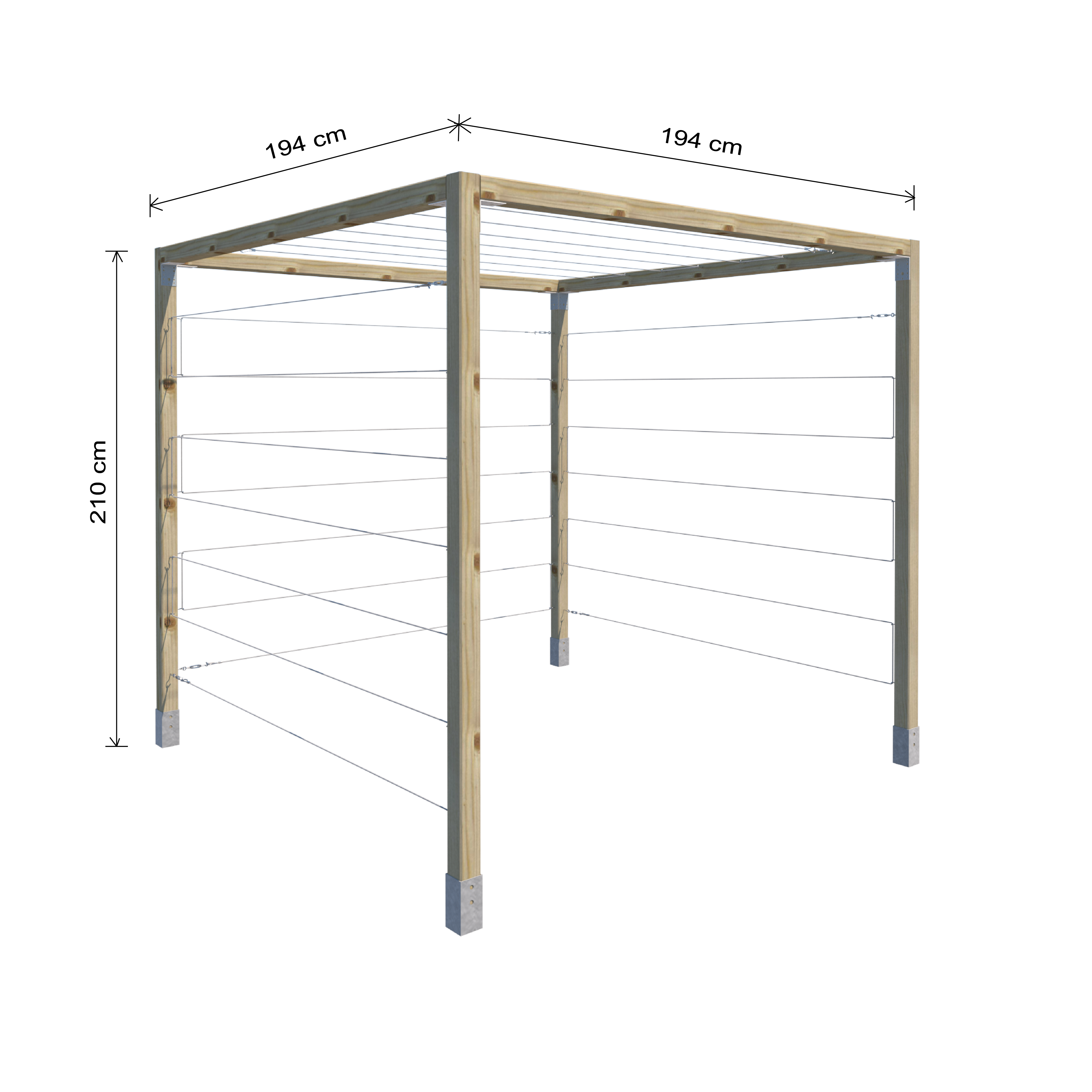 Pergola osłonowa na śmietnik 210x194 cm – drewno i linki stalowe